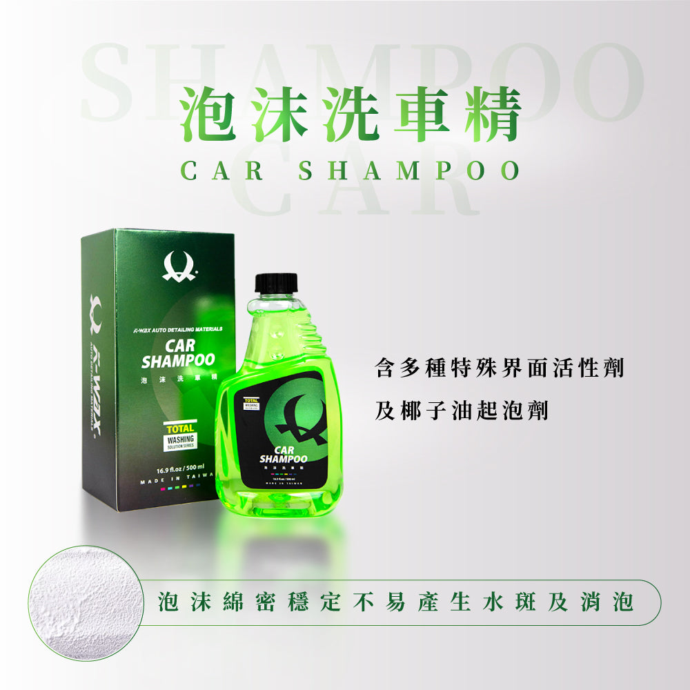 - Foaming Car Shampoo: 1:1000 high concentration; dense, slick foam effectively cleans paintwork contamination.