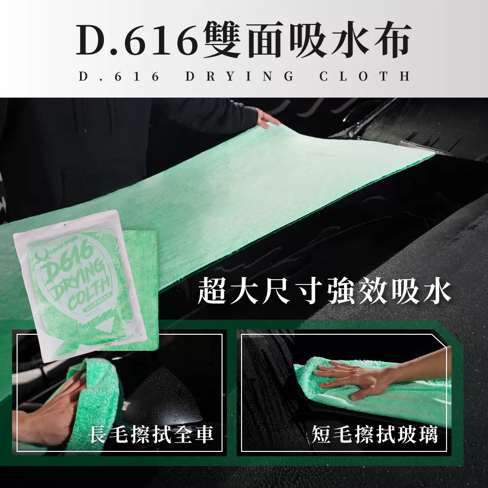 - D.616 Dual-Sided Drying Towel: Excellent absorbency—one towel dries the entire vehicle with ease.