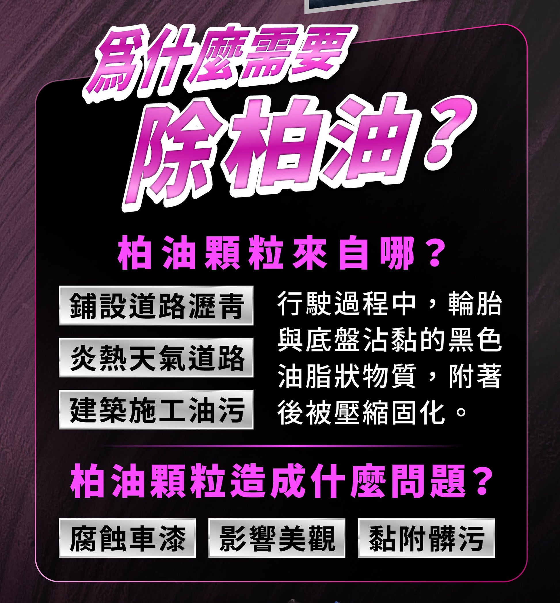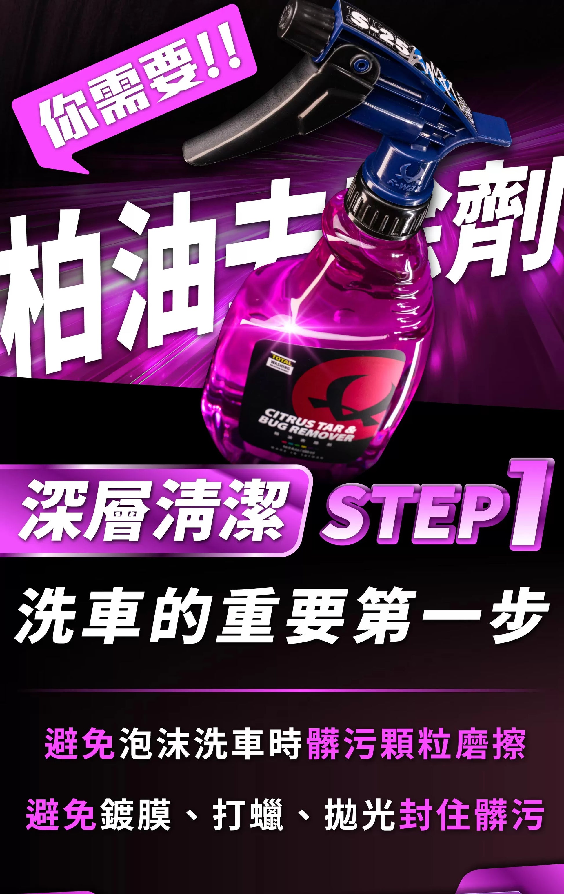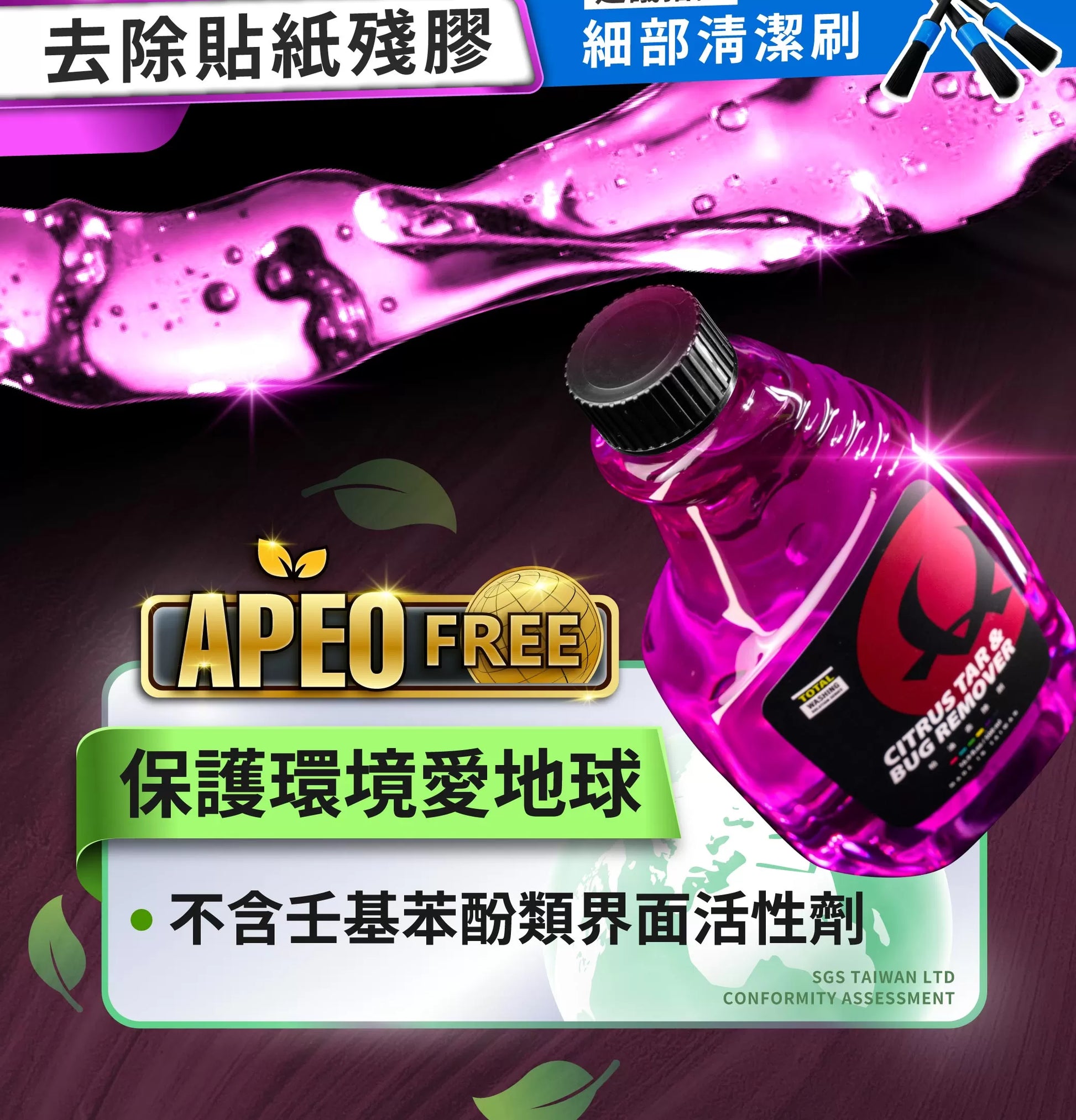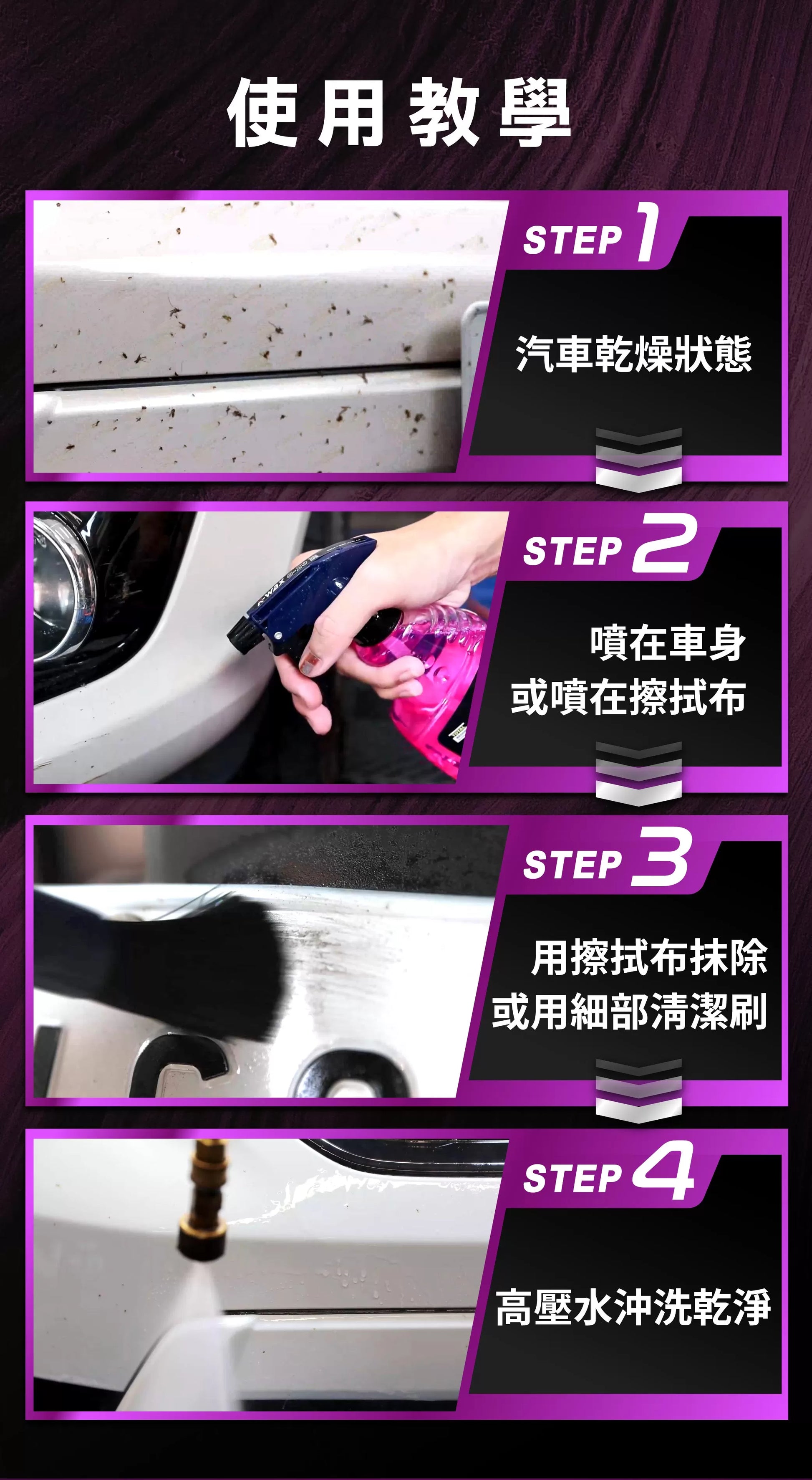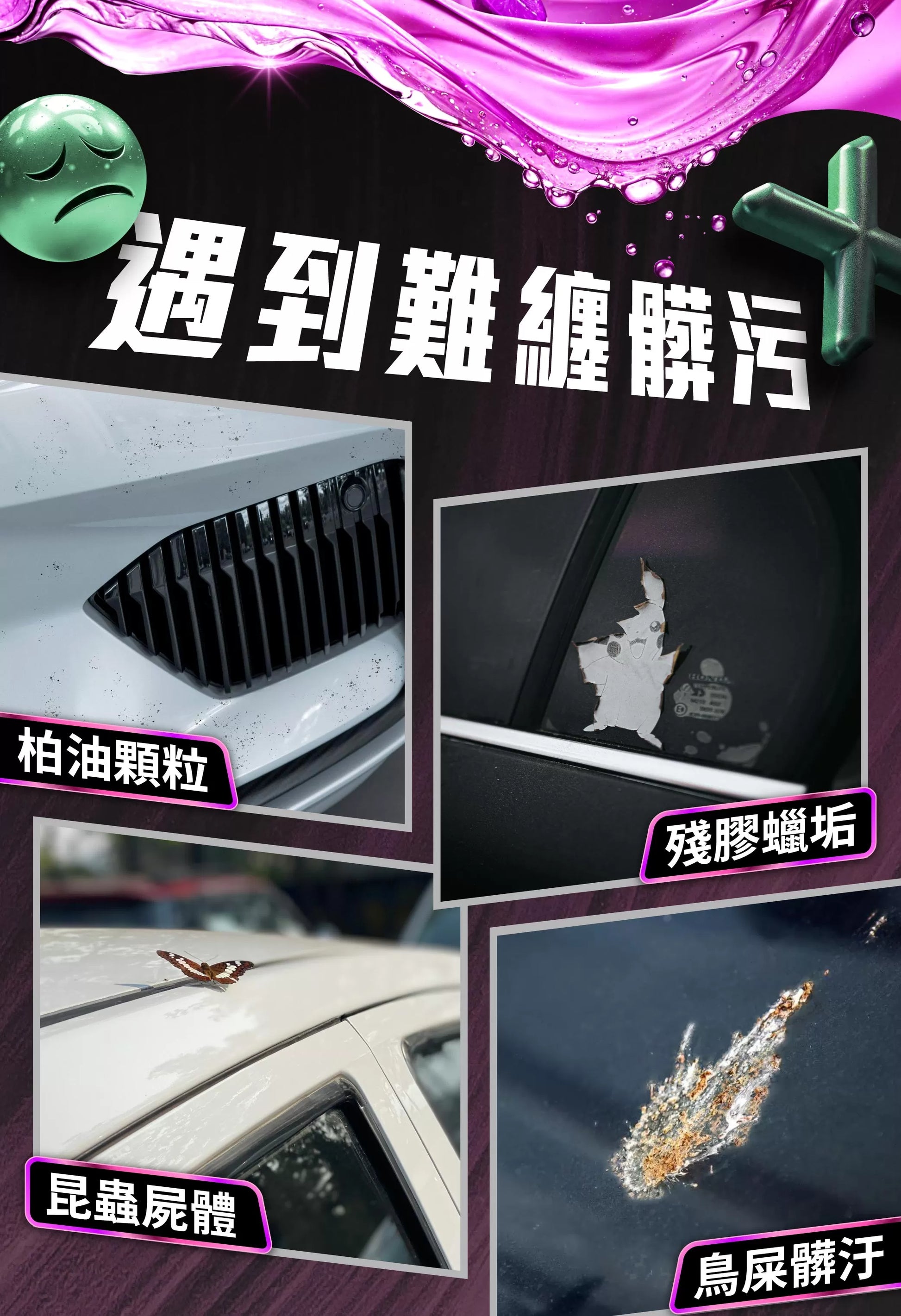 - Removes tar, oil film, wax stains, bird droppings, sticker adhesive, and insect remains.